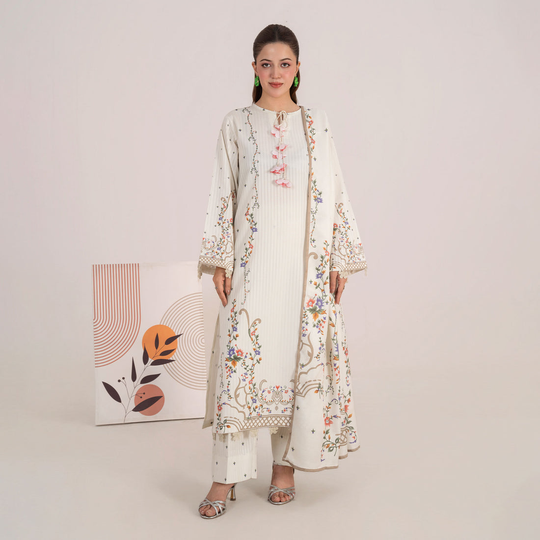 Printed Cream Khaddar 3-Piece | Winter Elegance Women’s Suit