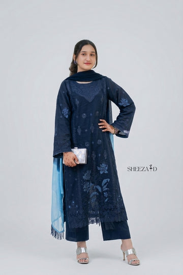 Blue Fully Embroidered 3-Piece Festive Pret