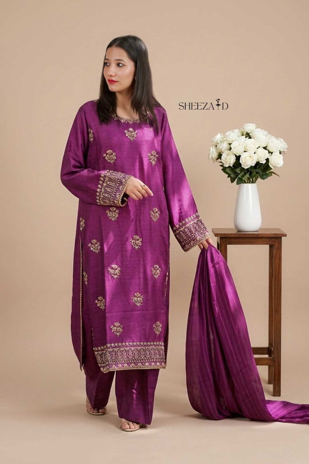 Noor Mahal Zari Silk Suit | SD-SL-26-09