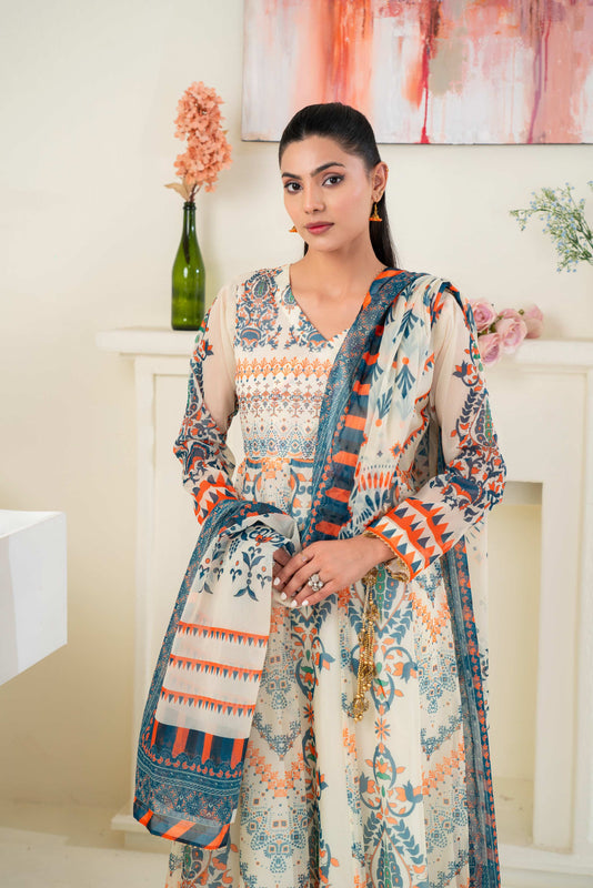 Printed Cream Khaddar 3-Piece | Winter Elegance Women’s Suit